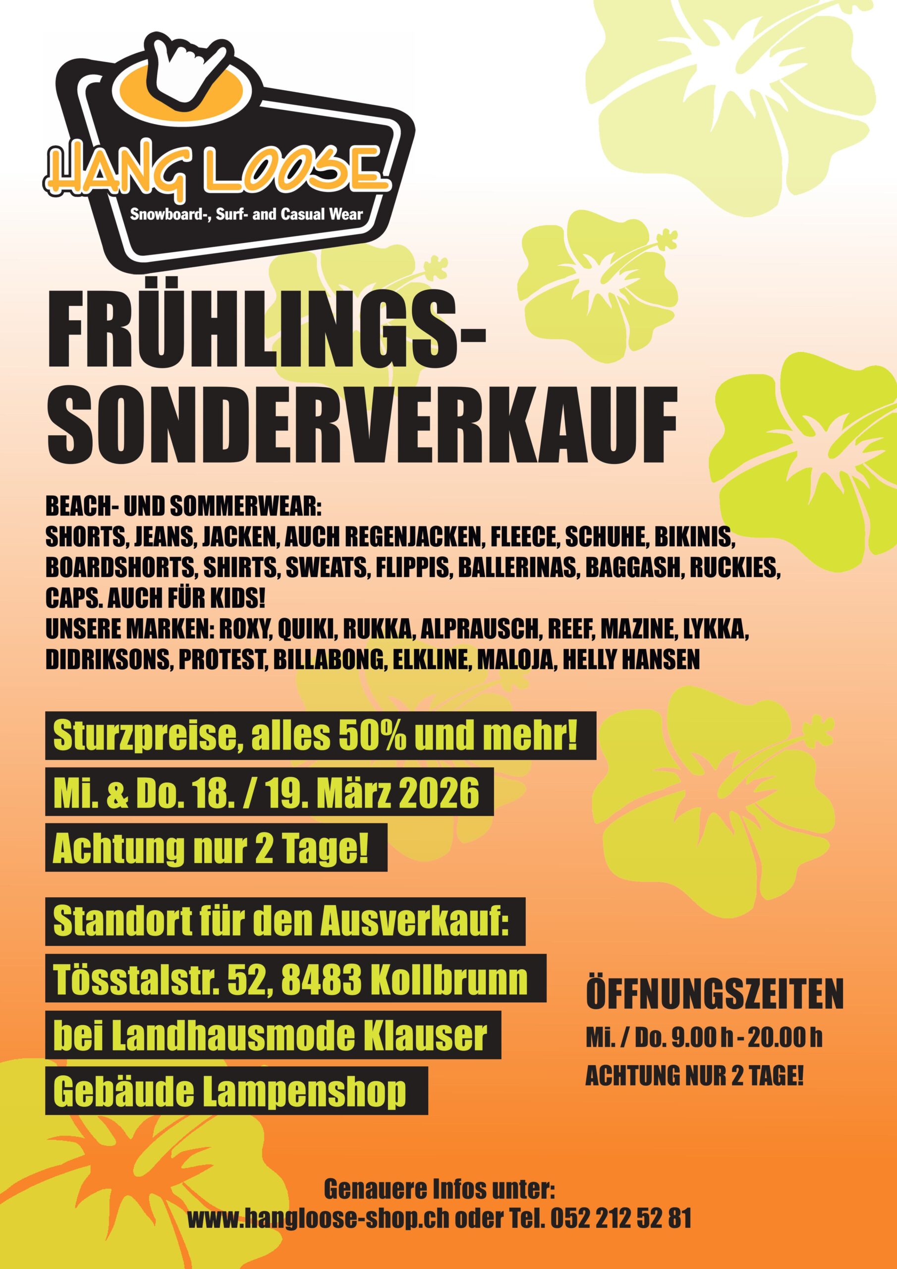 Hang Loose ist dein stylischer Sport- und Outdoor-Shop aus Winterthur. Bei uns findest du moderne Sportmode und funktionale Activewear für deinen Alltag in Bewegung – vom Fitness über Yoga bis hin zu Wanderabenteuern in den Bergen oder actionreichen Tagen im Schnee. Entdecke hochwertige Skibekleidung, robuste Outdoor-Jacken, bequeme Baselayer, atmungsaktive Shirts und vieles mehr. Unsere Auswahl steht für Qualität, Style und gute Laune beim Sport.